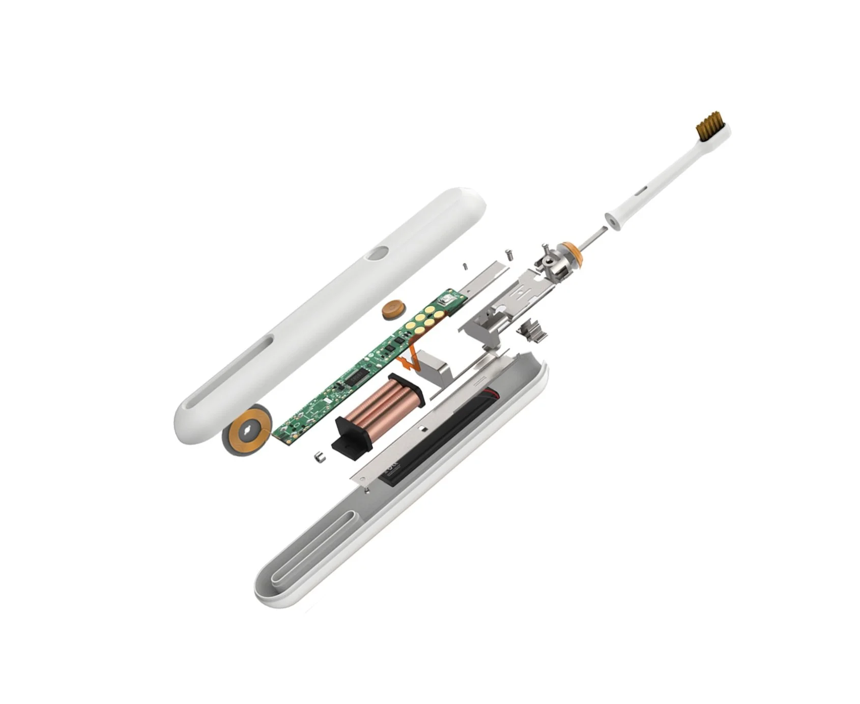 The toothbrush uses a wireless charging coil that is positioned besides the wall-mount to seemlessly charge the device.
